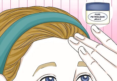 Use petroleum jelly on your eyebrows and hairline. If you get tanner in these areas, it can really stick out. For instance, if you get it in your hairline, it can create an uneven tan along that edge. Petroleum jelly will keep these areas from the fake tanner, creating nice, even edges. Apply a thin coating with your finger on your eyebrows and hairline. Along your hairline, get as close to the hair as you can. If you're worried about getting spray tanner on your hair, consider wearing a shower cap to help protect it.