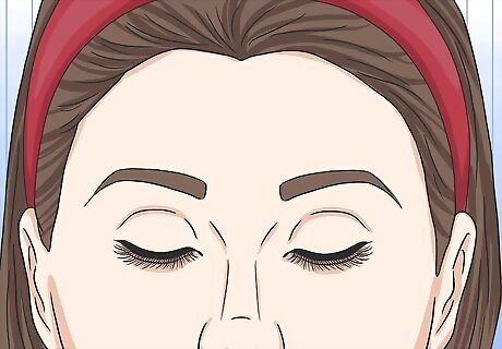 Move outward from these areas. Lightly pull the tanner down past your jawbone. Move it out under your ears, and up towards your hairline. Skip over your eyebrows altogether. Don't apply tanner to your eyelids, as it can turn them orange. The tanner can also get in your eyes.