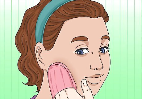 Seal your pores by rubbing ice on your face. Self-tanner can clog your pores, so you want to tighten them up if possible. Grab an ice cube, and run it over your face several times, until your skin feels slightly cold. You can also use a cool, damp washcloth over your face for a few minutes instead. Pat your face dry when you're done.