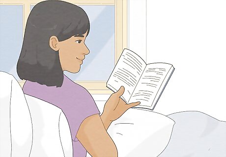 Get up and do something after twenty minutes. If you get too used to laying in bed wide awake, your brain might start making an unwanted connection between your bed and wakefulness. To jar your brain out of making such associations, get out of bed if you can’t get back to sleep after twenty minutes, and perform some kind of light activity until you feel ready for sleep again. Read a book or listen to relaxing music, but avoid the bright light of a television or computer screen, as those can stimulate your brain and keep you from falling back to sleep.