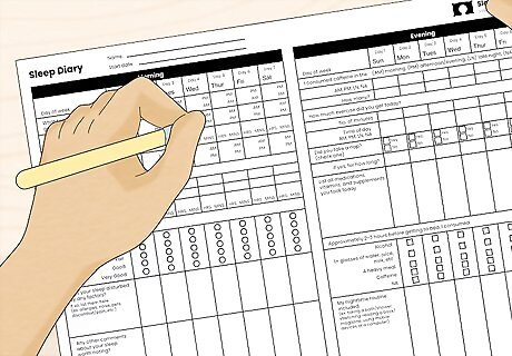 Keep a sleep diary. The best thing you can do to figure out what your body needs for healthy sleep is to keep track of it through a sleep diary. With time, you’ll be able to figure out which habits keep you from getting a good night’s sleep and which ones ensure it. Use the National Sleep Foundation’s template for a sleep diary. Take a few minutes every day to fill it out, making sure to be thorough and to not skip any days. Analyze the data from your sleep diary. Look for any patterns: do you sleep through the nights on the days you exercise? Does watching TV before bed result in interrupted sleep? Are particular medications causing sleep interruptions during the night? Change your day-to-day habits based on the patterns you pick up to set yourself up for regular, uninterrupted sleep.