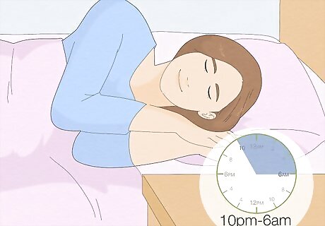 Follow a nightly pre-sleep routine. By following the same steps before bedtime every night, you’ll train your body and brain to anticipate a restful night. Do the same things every single night in the hour leading up to sleep. An example might be: Take a bath or shower. Read a book or listen to relaxing music. Meditate.