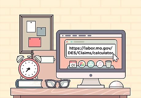 Use the online benefit calculators. The Missouri Department of Labor provides online calculators that you can use to calculate your estimated benefits. While it's still just an estimate, it's generally more accurate (and less time-consuming) than trying to calculate your potential benefits by hand. If you worked full time, you can calculate your benefits using the calculator at https://labor.mo.gov/DES/Claims/calculator. Part-time employees can calculate partial benefits using the calculator at https://labor.mo.gov/DES/Claims/partial_benefit.
