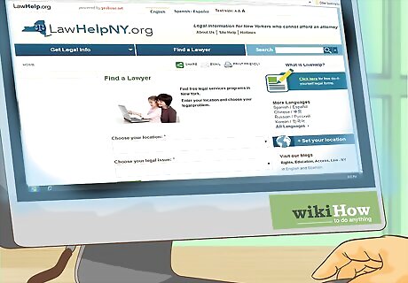 Call a legal aid hotline in your city. Your borough, city, or county might have a legal aid hotline. You can find it by looking in your phone book or by searching online. Type “legal aid” and then your location. Find the number and call. There may also be an online intake form you can complete at the legal aid website. Someone at the organization will analyze your information and call you back.