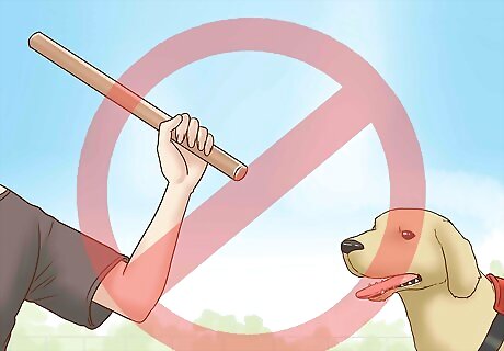 Avoid punishment-based training models. While training helps you establish you as your dog’s leader, you want to look for training method red flags. Any trainer who uses punishment-based models or models based on dominance and submission are not trainers you want to take your dog to. You do not want a trainer who uses shock collars, choke collars, or physical punishment if a dog does something wrong. Watch for language that reinforces these ideas, like “negative reinforcement,” “dominant,” or “alpha.”