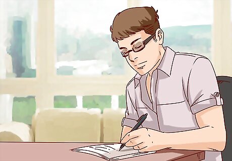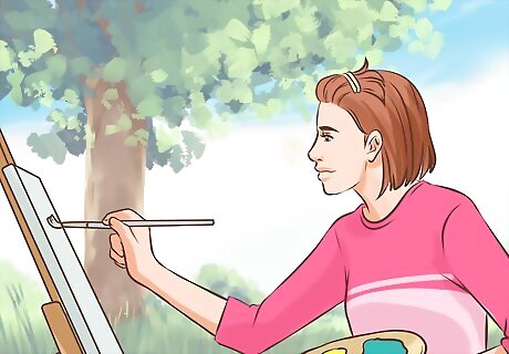 Make a list of things that interest you. Write down a list of all the passions that you had when you were younger or things that you'd like to do more or learn more about. When writing down your list, make sure that the hobbies are things that make you happy. If you enjoy the outdoors, you can hike, fish, or landscape. If you enjoy art or music you can pick up your old instrument or take up painting. Other hobbies include painting, biking, cooking, photography, embroidering, yoga, or joining a community sports team.