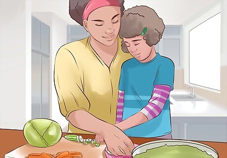 Involve your children. You can involve your children when doing your hobby to strengthen the bond with your child and improve their self-esteem. Think of age-appropriate ways that you can incorporate your child in what you are doing. If you love playing music, try teaching them how to play an instrument. If you enjoy art, give them a paintbrush to see what they can create. You can also involve your kids with cooking, art, video games, sports, model making, puzzles, or woodworking.