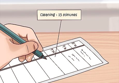 Write down your schedule so you know when you have time for hobbies. If you don't already have a detailed schedule, you should write it down so that you have a better understanding of when you'd be able to partake in your hobby. For example, if you work 9-5 and have a babysitter until 7, it gives you 2 hours after work to enjoy your hobby. Find other areas of downtime in your schedule.