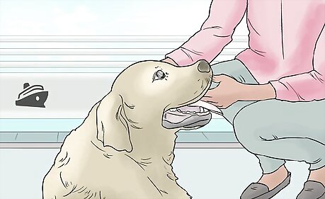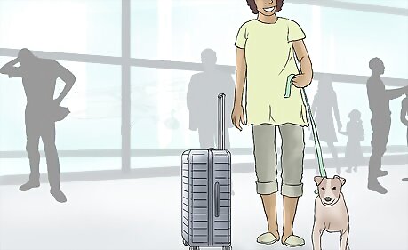 Take your animal on a flight. Airline accommodations will vary, both in terms of policy and in terms of pricing. Some airlines will allow your animals to travel in the cargo bay within a kennel for a fee, while others will allow your animal to travel aboard the plane, as long as an animal fee is paid and your pet’s carrier can fit beneath your seat. Note that service and therapy animals are different. Airlines are required to allow service and support animals to fly with you without the use of a carrier. Make sure that your dog is crate-trained before the flight, and that they can handle being a kennel for the total duration of the flight.