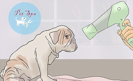 Visit pet spas. Some spas offer relaxation techniques for your beloved animals. Treatments might include the usual nail trim and wash, or might go so far as to offer animals massages. While some animals might not appreciate attention from strangers, others will do just fine, so pamper according to your animal’s comfort level. Some pet spas are more extravagant than others, so make sure you check with the closest pet spa to determine what types of services they offer. Some do little more than offer watching services, while others offer massages, play sessions, training sessions, and more.