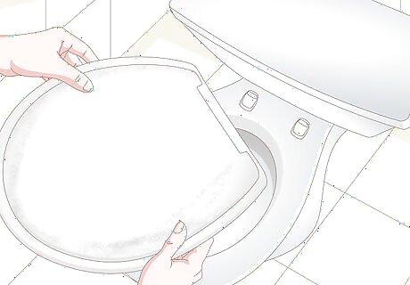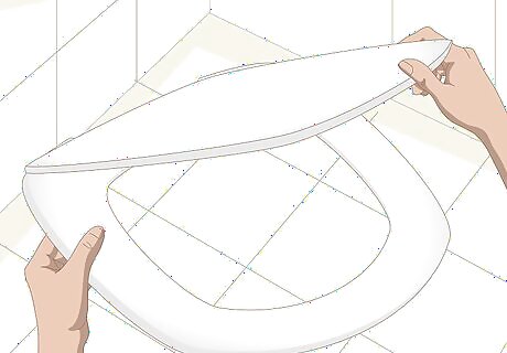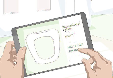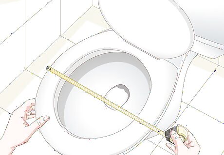 Keep the seat on and measure it if you're just adding an accessory. For example, leave the seat in place if you're adding a snap-on accessibility or potty-training attachment. In this case, use a tape measure to determine the maximum length and width of the seat. Also measure the spacing between the bolts that hold the seat in place (located in the hinges at the back of the seat), and record the distance between the bolts and the toilet tank. Use these measurements when shopping for attachments. Some accessories may instead attach to the mounting bolts, in which case the bolt spacing measurement is of particular importance.