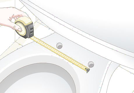 Measure the distance between the bolt holes at the back of the seat. Measure from the center of one bolt hole to the center of the other. Write down this measurement with the others. The standard bolt spacing in the U.S. is 5 ⁄2 in (14 cm), while in Europe the range is typically 6–6 ⁄2 in (15–17 cm). Some toilet models may have spacing in the range of 7–10 in (18–25 cm). In this case, you may need to order a seat directly from the toilet manufacturer.