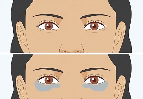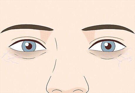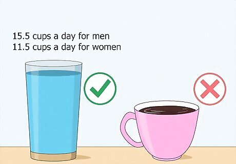 Drink enough water and avoid consuming too much caffeine. Caffeine increases urine production, which can remove water from your system quicker than usual. Without water, your skin can become dry and contribute to your sunken eyes. So, drink enough water per day (15.5 cups a day for men, 11.5 cups a day for women) and avoid overdoing it on the caffeine to curb your sunken eyes. Excessive amounts of caffeine can also make it harder to sleep at night, which further contributes to sunken eyes.