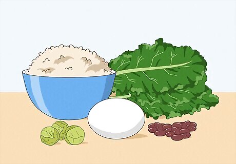 Eat nutritious foods to promote collagen production. When your skin is producing collagen, that means it will be elastic and strong, staving off wrinkles and sagging skin around the eyes. There are plenty of nutritious foods to incorporate into your diet that boost collagen production and fight off sunken eyes, including: Bone broth Beef Chicken Fish Eggs Beans Nuts Whole grains Broccoli Kale Brussel sprouts