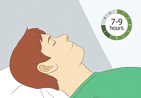 Keep a consistent sleep schedule. Sleep plays a key role in ensuring that the brain, immune system, metabolism, and skin are maintained and that the body is repaired, but when you don’t get a full night of rest, the body can’t repair itself as efficiently. This can result in paler skin and drooping eyelids, so make sure you get a consistent 7-9 hours of sleep per night. Makeup artist Christin Birckhead says getting your eight hours of sleep a night helps with staving off those dark under-eye circles.