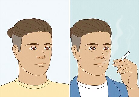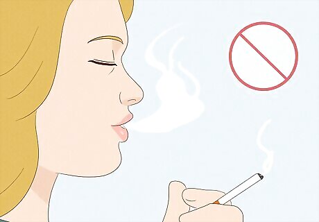 Stop smoking. Smoking cigarettes breaks down the collagen in your skin, which contributes to sagging eyelids and dark, sunken eyes. So, if you want to get rid of your sunken eyes, cut out your smoking habit so your collagen can recover and your skin can be rejuvenated.