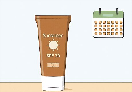 Wear sunscreen every time you leave the house. Sunscreen protects your skin from sun damage, preventing early aging, which can contribute to sunken eyes, as well as protecting against potential skin cancer. To protect your eyes and help prevent them from sinking, apply sunscreen that’s SPF 30 or higher 30 minutes before going outside.