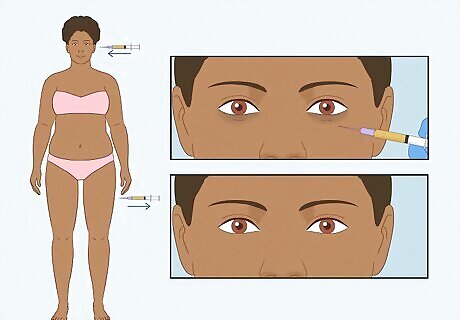 Get a fat transfer or implant in the tear trough area. Getting a fat transfer from another part of your body or a silicone implant into your tear troughs is a great way to fill out the sunken eye look and make your skin look more plump and youthful. Fat transfers tend to be less invasive than implants, so if you’re looking for an option that involves less scarring and shorter recovery time, they might be up your alley.