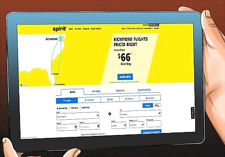 Visit the Spirit Airlines website. In your web browser, you can visit https://www.spirit.com/Default.aspx to begin the process of booking a flight. Spirit offers a number of booking options, from flights to car rentals and entire vacations. Since you’re looking to book a flight, select the “flight” tab.