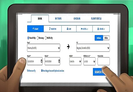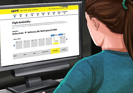 Select your departure and destination locations. Spirit only flies between select airports, which are provided for you in drop down menus. You will also want to include the dates you will be travelling and the number of people travelling with you. Once you search, a few different fare options will pop up. There may be a direct flight available, or you might have to choose a flight with a layover in a different city before continuing to your destination. Be sure to account for extra time in between flights if you select a flight with a layover, as Spirit experiences many delays.