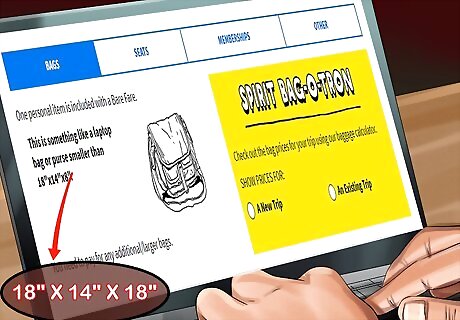 Purchase a carry-on or checked bag while booking your flight. Since Spirit offers its services “a la carte,” you are given the option of adding additional baggage to your trip before checking out. This is the cheapest time to add baggage, but prices will vary between $21-$50 depending on your destination and the size of the bag. The price of carry-on or checked bag increases after you book your flight. If you realize you’ll need to check a bag, you can add luggage to your flight at any time at a slightly higher price. Adding checked luggage the day of the flight will incur up to $100 in fees.