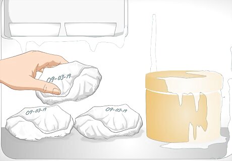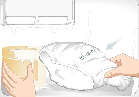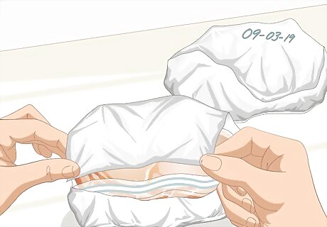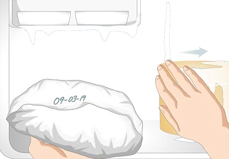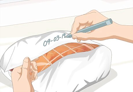 Place individual portions of the ham into freezer-safe bags. Each bag should contain an amount that you will be comfortable with defrosting and eating completely, since you will not want to refreeze the ham once it has thawed. For example, if you would like to eat two servings of ham for dinner, place two servings into the bag. Depending on how large you want your portions to be, you may need bags that are gallon-sized, quart-sized, sandwich-sized, or a combination of the three.