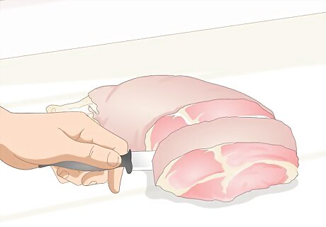 Cut the ham into smaller portions if you have not already done so. Using a sharp knife, slice or chop and dice the ham. The pieces can be as large or small you like, but should be relatively uniform in size. Keeping pieces roughly the same size ensures that the ham freezes and will thaw evenly.