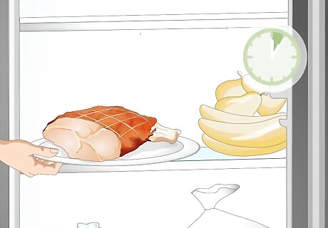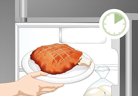 Leave the ham in the fridge for about two hours to fully cool down. This will further dry the ham and prepare it for being placed into frozen storage. Check back on the ham after an hour to see if it has cooled. The time the ham will take to cool will depend on various factors, like how hot it was when served, how long it sat out while you were eating, and how cold the fridge is.