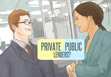 Understand the difference between private lenders and public lenders. Private lenders are not banks, financial institutions, or credit unions. Instead, private lenders are non-institutional lenders who as companies or individuals loan money to others. Those who receive loans from private lenders are typically awarded money based on their relationship with the private lender.