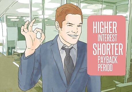 Examine if cash can be used to fund some or all of the purchase. If the return on the purchase does indeed make the cost worthwhile, examine if it can be partially funded using existing savings, or if money can be saved over time to fund the purchase. This can reduce interest costs through potentially smaller loans, or prevent the need for a loan all together. Seriously consider cash as an option if you intend to make a consumption-based purchase (like a vacation or a new television), that offers no return.
