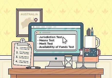 Determine if you likely meet the eligibility tests. Each state and territory has its own requirements for legal aid grant eligibility. These requirements are based on the average income, needs, and available resources of that state or territory. Generally, there are 4 types of tests that are applied: The "Jurisdiction Test" looks at the court you're using and your legal issue's area of law. You meet this test if legal aid is available for assistance in that court and that area of law. Not all legal aid offices offer help in all areas of law. The "Means Test" looks at your income and assets to figure out how much money you have available to contribute to your legal assistance. The "Merit Test" looks at the circumstances of your case. If you have a high probability of success provided you're given a grant of legal aid, you likely meet this test. The "Availability of Funds Test" looks at the resources available to the Legal Aid Commission in your state or territory. You'll only get a grant if the office has the funds to provide it. You'll have no way of assessing whether you pass this test on your own.Tip: The Legal Aid Commission highly recommends that you talk to a Legal Aid attorney before you apply for a grant. They can look over your income and other documentation to determine if you're likely to be eligible for a grant and also help you apply.