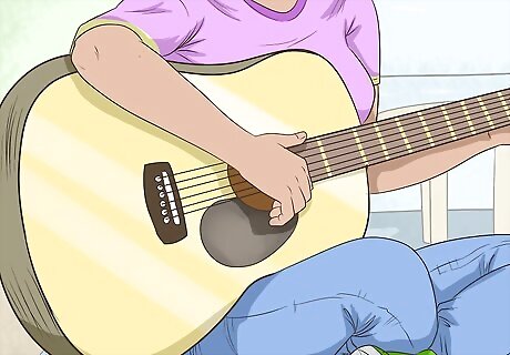 Try coming up with a melody based on a lyric. If you’ve already written lyrics, try singing the first line of a verse or chorus in an array of tunes and tempos. Play around with singing higher notes at different words to add emphasis. Keep experimenting until you find a memorable melody that captures the tone you’re trying to achieve. If you’ve written lyrics, ask a musical friend how they hear your words. Bounce ideas off of each other and sing the words in different improvised tunes.