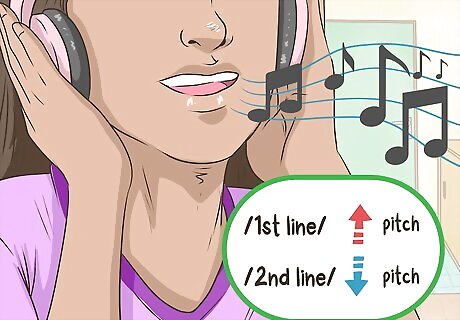 Build complementary tunes around your base melody. For the verses, craft a progression of tones, or notes, in standard patterns. In a simple melody, the first line often ascends the scale, or rises in pitch, then the second line descends in response. Sing the children’s song, “Twinkle, twinkle, little star / How I wonder what you are.” Notice how the first line’s notes rise in pitch, then the second goes lower. The verses’ melody repeats itself, but that doesn’t mean it should be predictable or boring. Rhythm is key, so experiment with combinations of quarter, eighth, and sixteenth notes to give your melody fresh, catchy rhythmic accents.