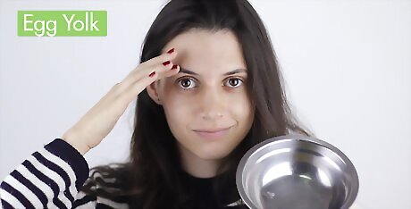Apply egg yolk over the eyebrows twice a week. Egg yolk is believed to improve the condition of hair follicles. Healthier hair follicles can help improve eyebrow hair growth. Crack open an egg and separate out the yolk. Gently beat the yolk for a minute with a fork to break it up. Use your finger or a cotton swab to smooth a bit of yolk over each eyebrow. Rinse off the yolk with cold water after 20 minutes. Repeat twice a week for best results.