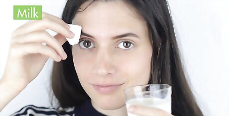 Dab milk directly over your eyebrows before bed. You might have heard the expression, “milk does a body good.” Some people believe milk also does your eyebrows good. Try pouring a bit of milk on a cotton ball and dabbing it on your eyebrows before bed. Leave the milk on your brows all night. The milk is believed to nourish the brow area and promote hair growth. You can use any type of dairy milk you have on hand.