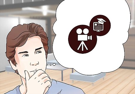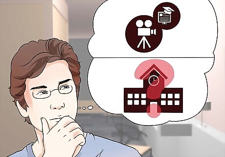 Look into other possibilities might show you alternate ways to get where you want. If the time and cost are too much, but college is still appealing, think about a minor in film and engaging in extracurriculars involving movies. Keep in mind that you could always return after you complete your college degree, this time as a graduate student and get a Masters of Fine Arts (MFA) in film. If film school and college are both unappealing, look for ways to get involved in the television and film community where you live. Explore the possibilities of public access television, experimental film fests/contests, or creating online video content.