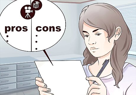 Weigh the length of time and cost. Although financial aid is available at most film schools, getting an undergraduate degree in film takes at least four years and typically costs tens of thousands of dollars. Some people involved in the film industry went to film school, but many did not. Having a film degree is no guarantee of a job in the entertainment industry.