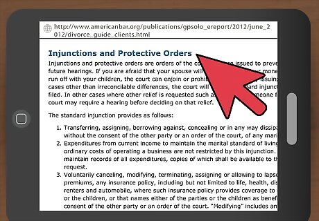 Seek an injunction. If you're concerned about inappropriate spending of marital assets during the divorce, you can ask the court to issue an injunction against your spouse that prohibits them from taking certain actions such as draining accounts or selling marital property. Typically the family court will have a form you can fill out to request an injunction. If you have an attorney, they probably have already asked for one when your petition was filed, but ask to make sure. In some states, injunctions are issued as a matter of course when a petition for divorce is filed. In others, you'll have to request an injunction after you've filed your petition. The injunction typically lasts until marital assets are divided, either at the trial or on agreement between you and your spouse. Once you have an injunction, if your spouse continues to spend money inappropriately, you can present the evidence to the court and your spouse will be held in contempt for violation of the injunction.