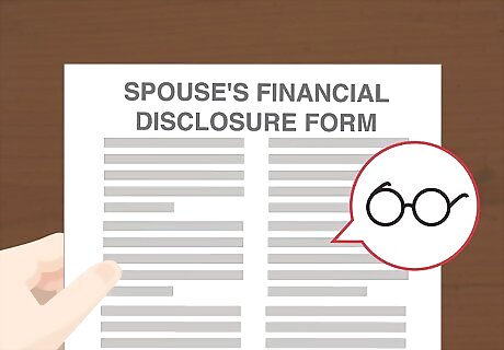 Scrutinize your spouse's financial disclosure form. Both you and your spouse must complete a financial disclosure form as part of your initial divorce filings. You can use this form as a guide to uncover any inappropriate spending. If you have reason to believe your spouse has been dishonest on this form, tell your lawyer immediately. Financial disclosure forms are signed under oath, and dishonesty is perjury. Your spouse's financial disclosure form lists all assets, including financial accounts. Compare them to your own records to reveal any possible discrepancies.