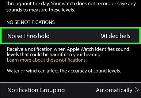 Scroll down and tap Noise. It's next to a yellow icon that resembles an ear. This opens the Settings menu for the Noise app on your Apple Watch.