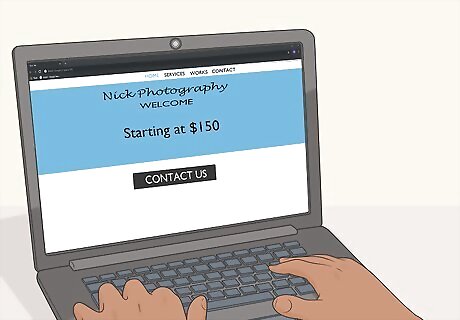 Ensure you have a user-friendly website with contact and pricing info. Along with a slick design and exceptional SEO, make sure your website designer makes your site intuitive and user-friendly. Your business name and contact information should be prominent, and it should be easy for customers to get in touch with you. Also offer a general idea of pricing for different types of photo sessions. Along with a business phone number, for instance, you might add a prominent “Ask a question” box that lets potential customers contact you by email. You don’t have to list specific prices, but it helps to list a range like “Starting at $150” for a particular type of session.