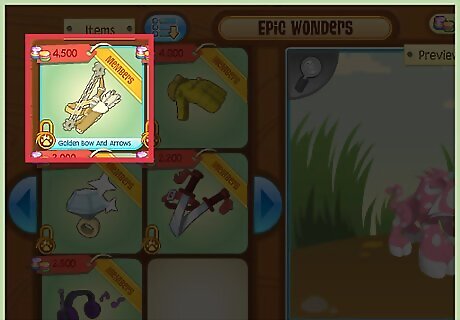 Start small. Be on during Christmas/holiday season to get a bow and arrow. Collect clearance items. Clearance items are items that are leaving the shops for a while. You know something is a clearance item because it will have an orange tag that says "(certain number) days left".