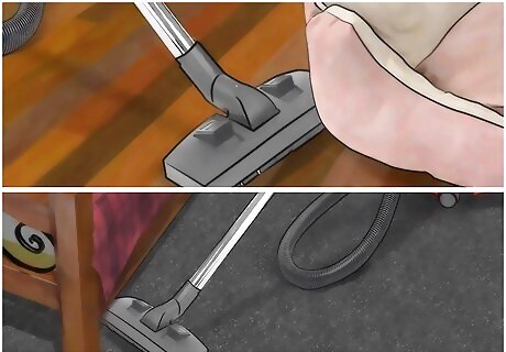 Vacuum all living areas every day. Lice may have gotten onto cloth furniture surfaces or they might still be living on hairs that have fallen onto these surfaces, so make sure to vacuum daily to prevent the lice from finding a host again. Vacuum your home thoroughly, especially any surface that may have made contact with your child's head. Areas that you should be sure to vacuum include: Carpets Mattresses Upholstery