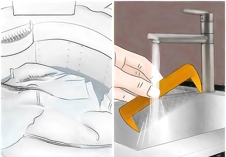 Wash bedding and clothing. Wash all (everyone's) bedding, clothing, hats, jackets, stuffed animals and other items that may have been exposed to the infested person during the two days before treatment. Wash these items using hot water (should be at least 130°F) and the high heat drying cycle. For anything that cannot be machine washed, have it dry-cleaned. Just make sure that you check first with the dry cleaner and explain that it may have lice on it, so that they can take extra precautions.