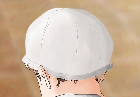 Cover your child's head after applying the orange juice. It is important to leave the orange juice on your child's head and allow it to work. Do not leave your child's head uncovered because it may drip or dry and become sticky in your child's hair. Either wrap your child's head in a cotton towel or cover your child's head with a plastic shower cap or a swimmer's cap. Leave the orange juice on your child's head for 30 minutes