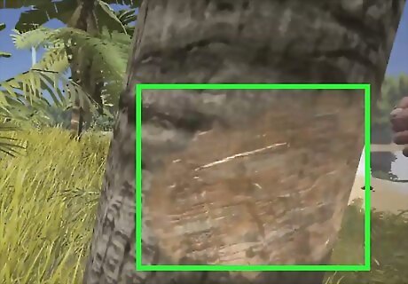 Gather some resources. You're not going to have any tools right of the bat, but you'll get to that. Now, this part is simple. Run up to a tree, and begin to punch it (right trigger 2 on Xbox or PS4, left click on PC), until it falls to the ground. You now probably have some thatch and maybe some wood, right? Good! If you are on a beach, there should be numerous rocks scattered in the sand. Run abound, picking these up (△ on PS4, Y on Xbox, E on PC).