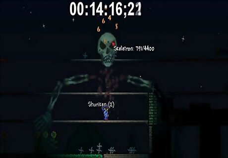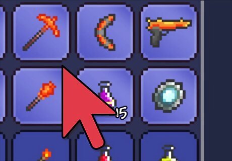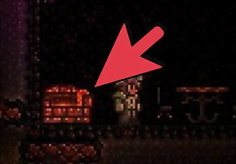Mine Hellstone. To do this, you'll need a Nightmare Pickaxe/Deathbringer Pickaxe. Easy method: Defeat the Eater of Worlds. Easier way: Go onto one of your worlds that contains the Crimson. Summon the Brain of Cthulhu with the Vertebrae. Every third Crimson Heart you break will also summon it. Defeat it, and get Crimtane ore by repeating this. Craft a Nightmare/Deathbringer Pickaxe.