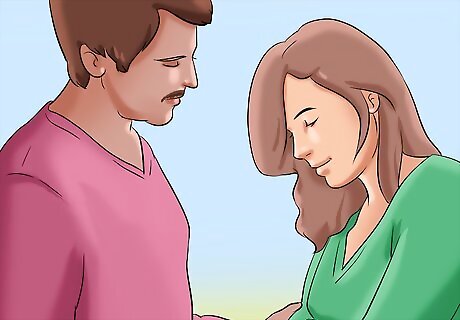 Use non-verbal cues to get his attention. Sometimes your husband is only momentarily distracted by what he sees. A gentle reminder that you are still there, like touching his arm, can snap his attention back to you. It can also be a subtle way to get back his attention while not openly stating that you saw him looking.