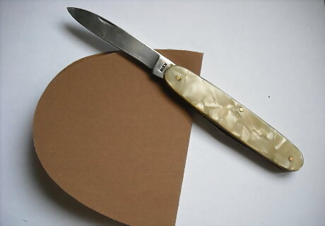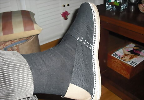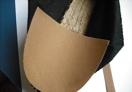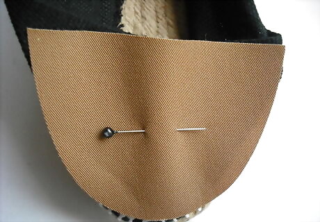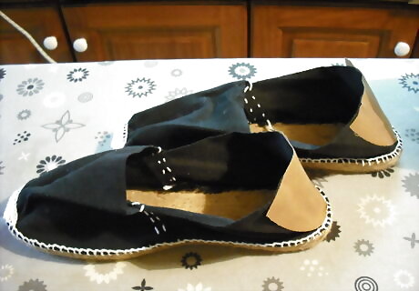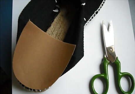 Adjust the patch. Place together the half patch's round part so that it meets the heel stitches and the straight part so that it meets the top part of the heel of the espadrille. Check if there is any excess of patch material at the top of the heel, and if there is, cut it off. Be sure not to nick the heel of the espadrille.