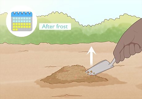 Remove the mulch once spring arrives and the ground thaws. As spring starts, wait for the temperature to consistently rise above 32 °F (0 °C). Once it has been above freezing for a few weeks, remove the mulch from your plant. Use a shovel or throw on some thick gloves and scrape it off the top of the soil. If you accidentally scrape away some of the top soil, go ahead and replace it.